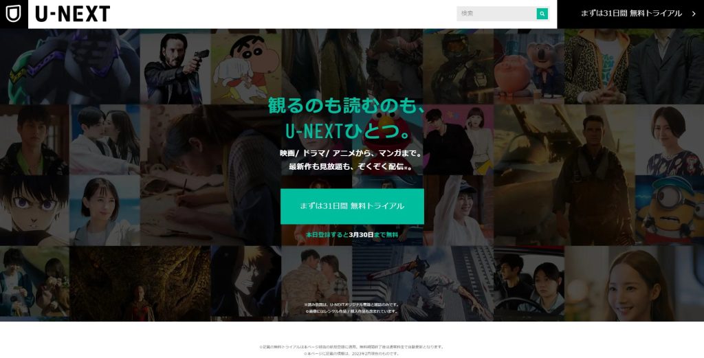 それぞれのサービス毎に無料トライアル期間がありますが、U-NEXTは31日間と、最もトライアル期間が長くなっています。